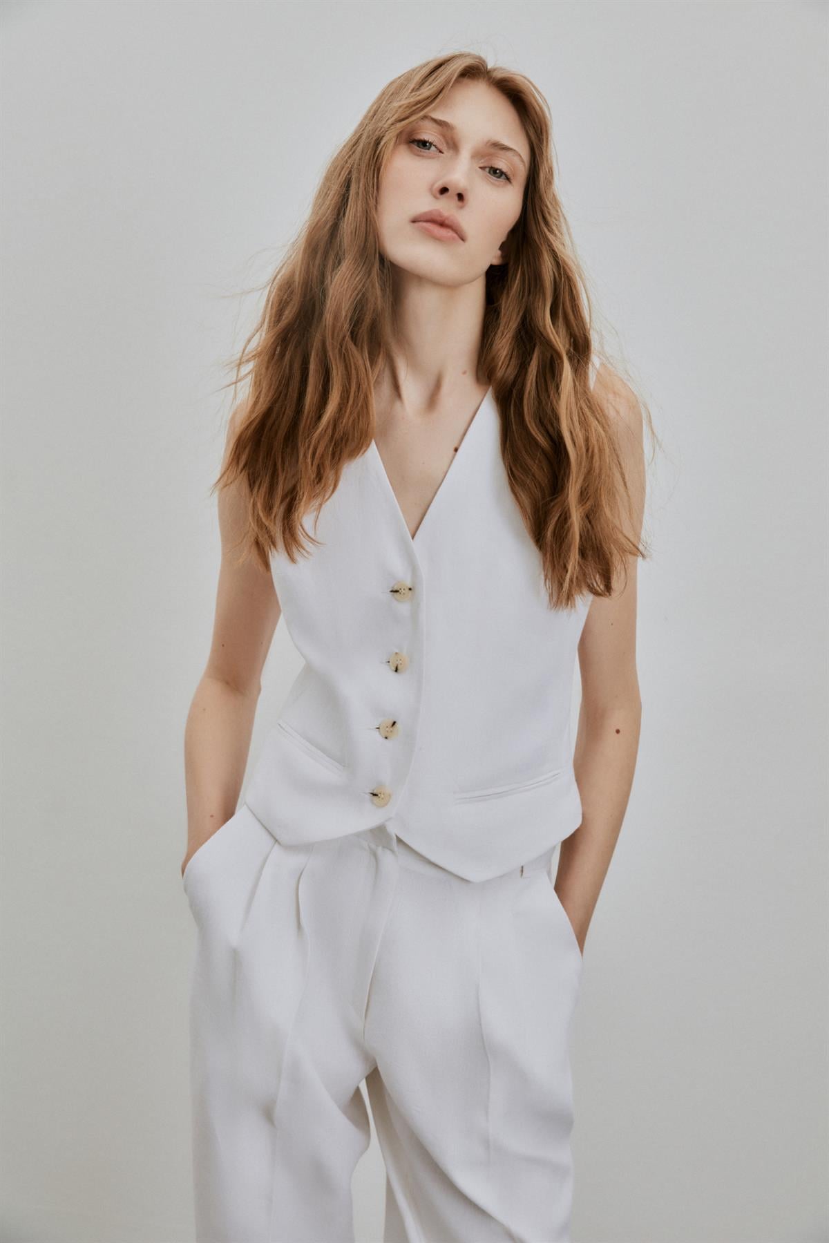 The model is wearing size 36.